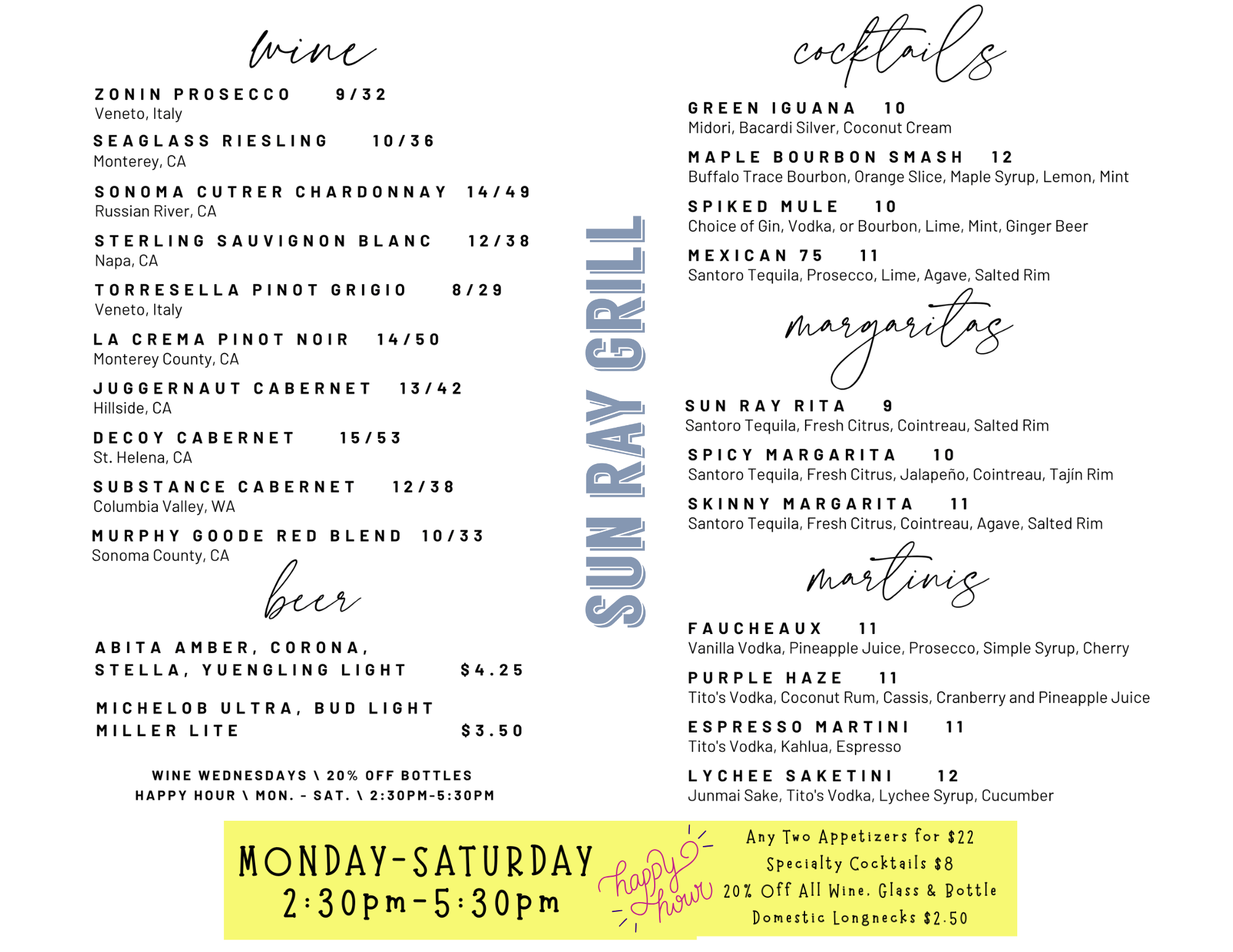 © Copyright 2025, Sun Ray Grill. All Rights Reserved.